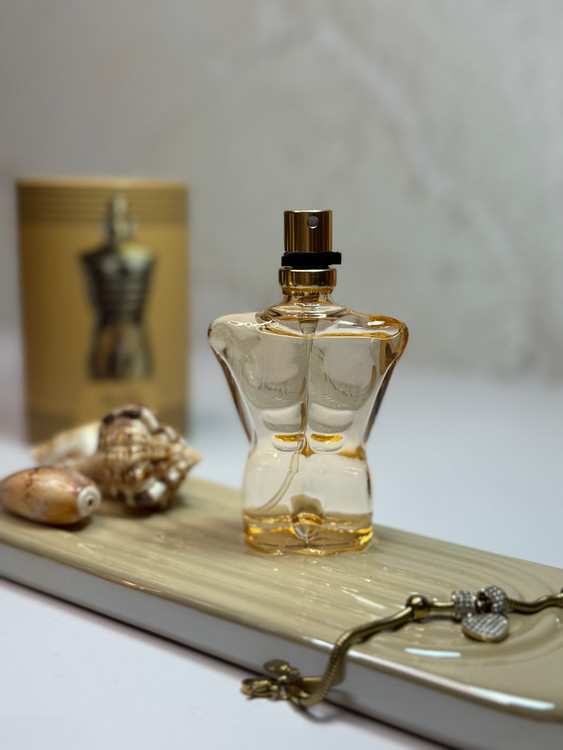 بطری «له میل الکسیر» شدیدا خیرهکننده است و انگار که عصاره مردانگی درونش شعله میکشد، درحالی که چشمگیرتر و جنجالیتر از همیشه جلوهگری میکند. این بطری شبیه به یک نیمتنه عضلانی است که در اثر تماس با نور غروب خورشید، رنگش نسبتا تیره و مسی شده است. ژان پل گوتیه چه اندامی را به تصویر میکشد... و با چه سبک ویژهای. بر روی عضلههای این نیمتنه که با رنگ طلایی آراسته شدهاند، خطوط ظریفی شکل گرفتهاند که با نوارهایی کهرباییرنگ هماهنگ میشوند. اینگونه است که این نوارها و خطوط درنهایت بطری عطر را به یک لباس ملوانی جذاب تبدیل میکنند و جلوههای بدننما هم به آن میدهند.